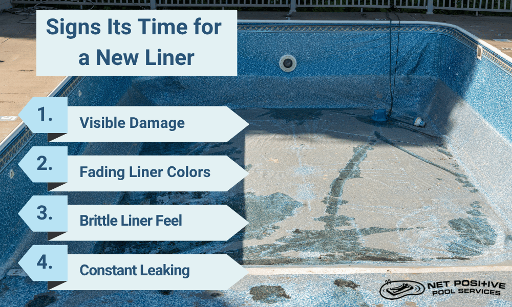 Most inground pool liners last 7 to 12 years with proper care. If yours is in that range and showing these signs, start planning.